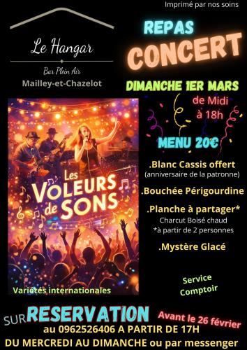Repas concert avec Les voleurs de son (variété internationale).